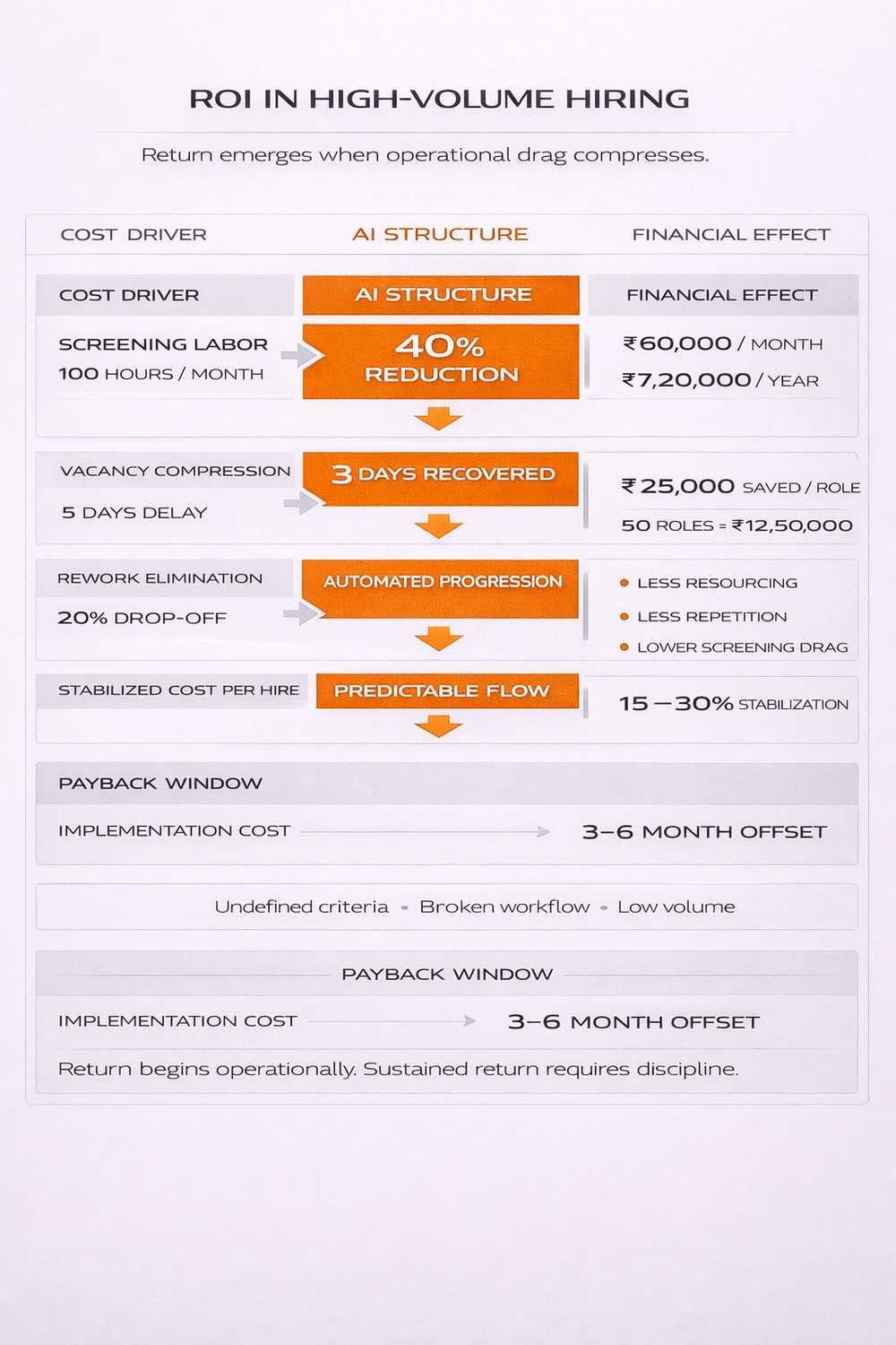 AI helps in high volume hiring by restructuring how candidates are evaluated, not by simply automating tasks within a hiring process.